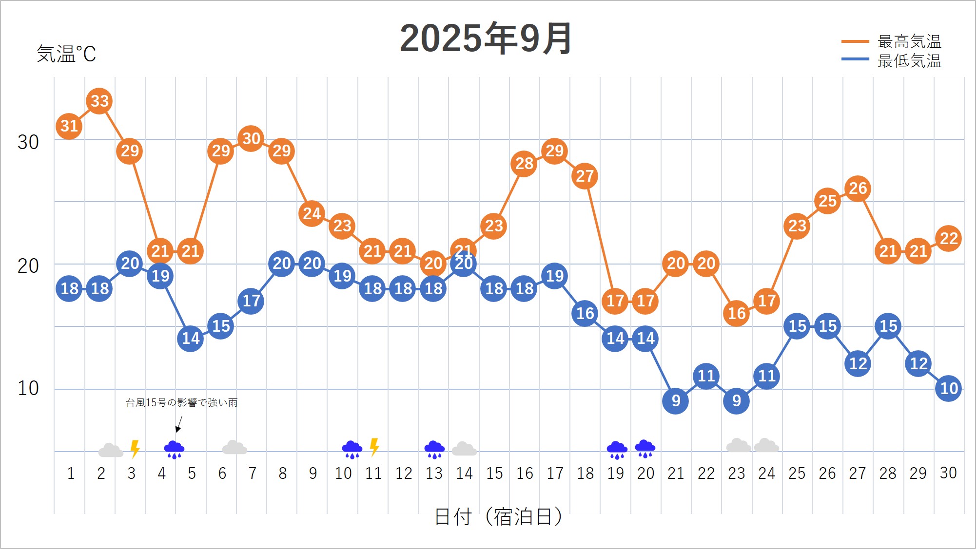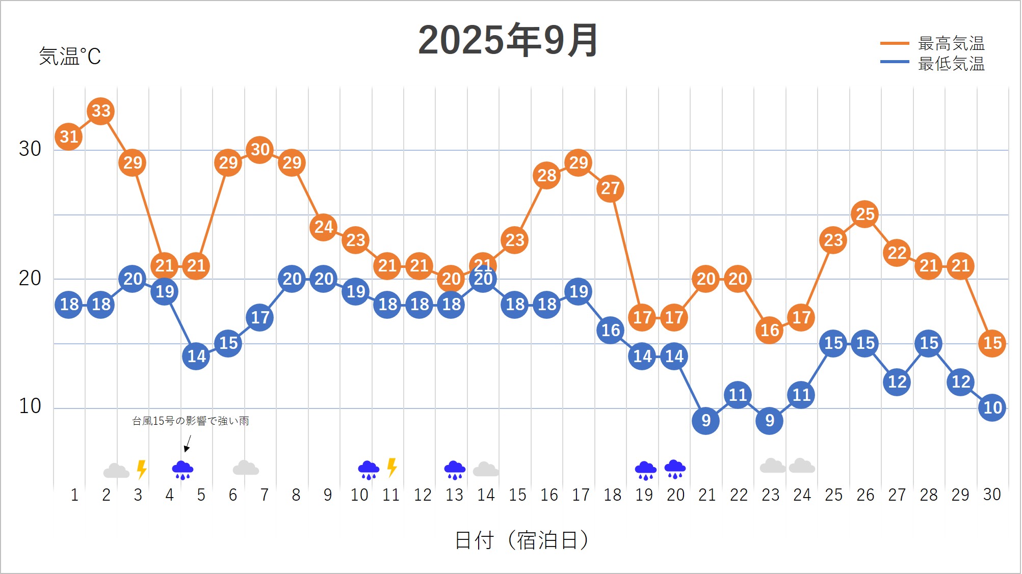 9月のキャンプで心構えしてほしいこと、天候や服装についてまとめました。