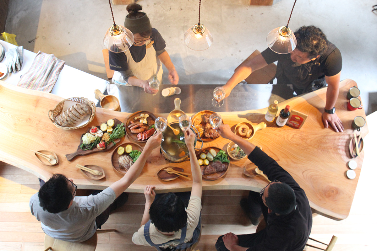 出張シェフを手配すれば、さながら貸切のオーベルジュとなる。薪火の香ばしい料理を囲み、忘れられない特別な時間を過ごすことができる。