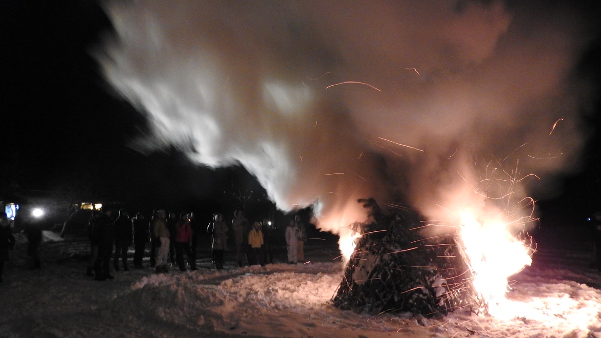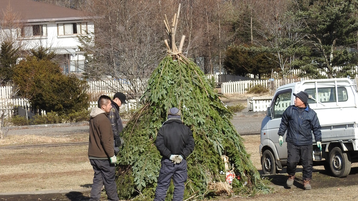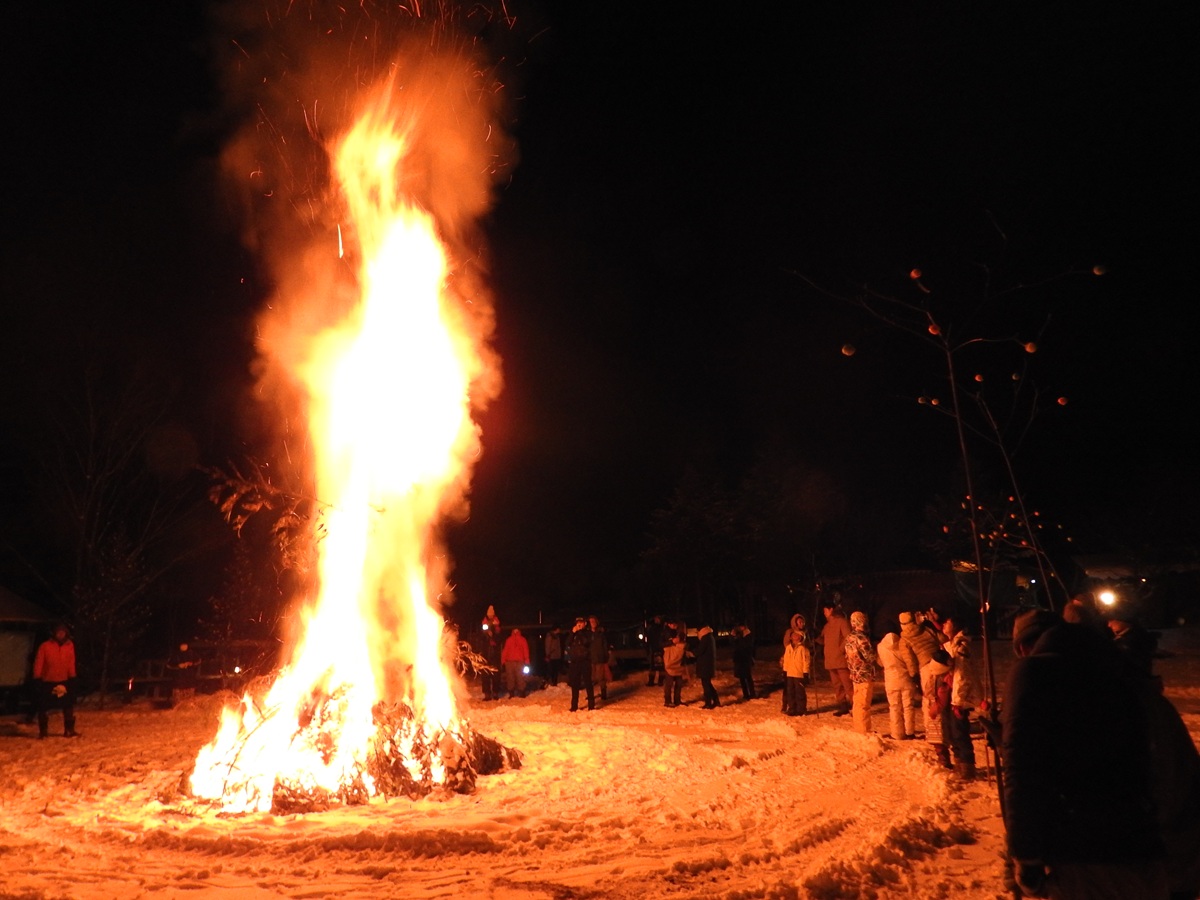 北軽井沢の地区でも行われるが、スウィートグラスでは宿泊者に向けたイベントとして毎年どんど焼きを行っている。