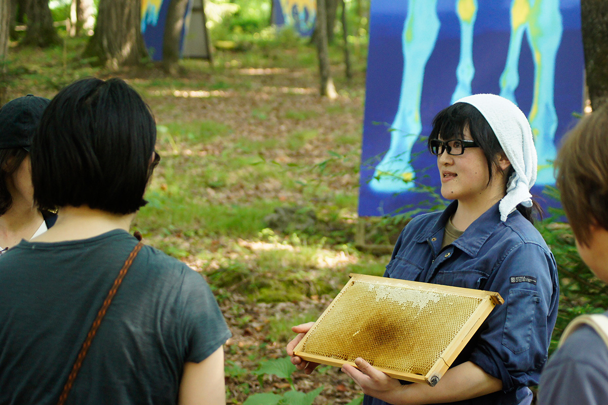森が生む価値は、薪だけに留まらない。伐採によって光が差し込んだ森には多様な花が咲き、そこを舞台に養蜂の実践が行われている。ミツバチが森の豊かさを集約した蜂蜜を丁寧に瓶に詰め、お客様の手元へと届けられる。生き物相手の養蜂という労働もまた、大きな自然のサイクルに参画する欠かせない要素だ。