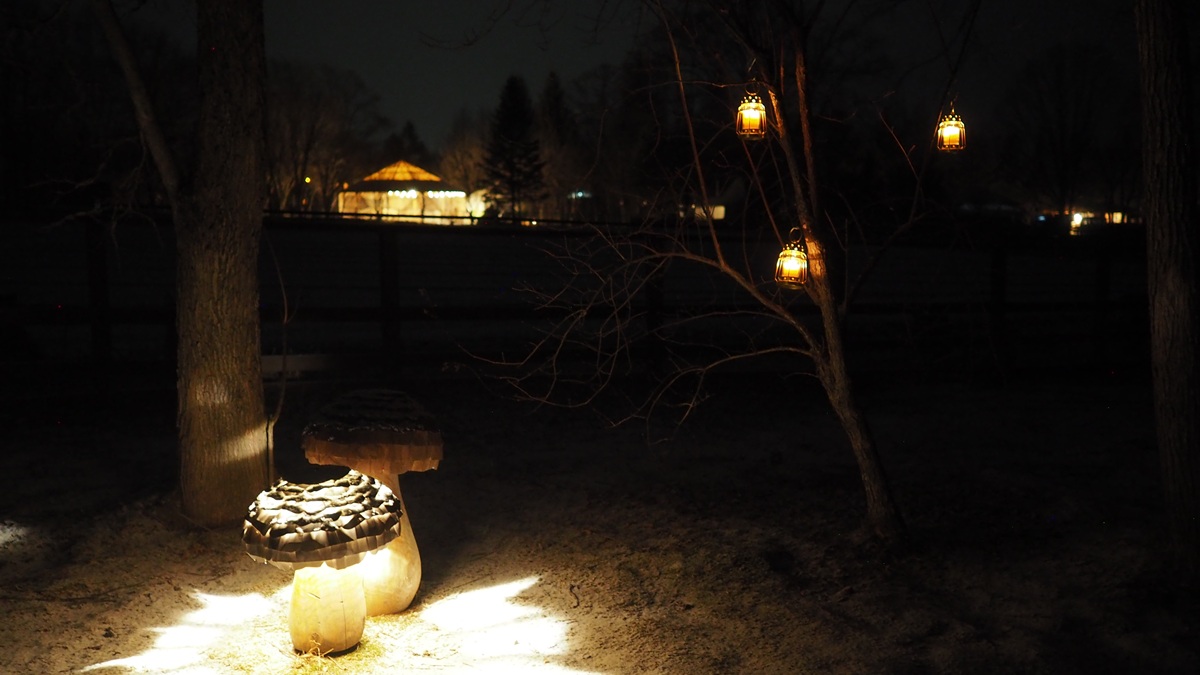冬の森は殺風景だ。陽射しを受け止めていた葉は落ち、今はすっかり見通しがいい。色は少なく、樹皮のグレーと地面の白黒のモノトーン。夏のお祭りみたいなにぎやかさにくらべ、落ち着いた雰囲気。夜は音が少なく暗い。人によってはこわく感じるかもしれない。
