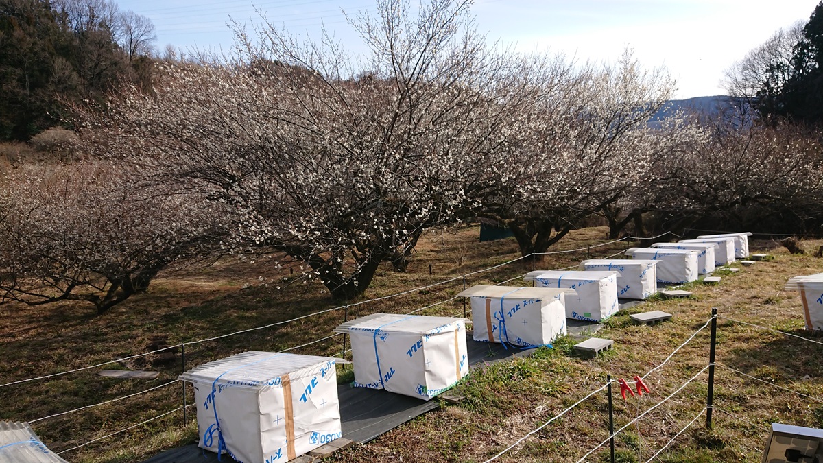 北軽井沢ではまだまだ冬の景色ですが、高崎の圃場では梅の花が咲き、徐々にハチたちも活発に動いています。冬明け1番に採取した「初蜜」はゴールデンウィークに間に合うよう準備中。