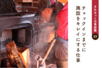 ▼最初はレンタル品のリセットから(返却された物を元の状態に戻す作業)、場内整備の作業も多い