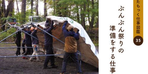 キャンプ場の運営から薪割りに煙突そうじ、夏には蜂蜜をあつめ、冬には雪を掻く… きたもっくの多種多様な「仕事」にフォーカスした、ミニコラムです。
